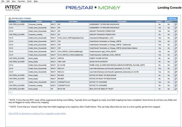 The product uses various access methods to allow the credit union to map its own forms, letter and file downloads from data extracted from the core data bases in a real time method.