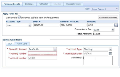 The software access the data base to provide information to EMC/SWBC for making credit card payments on loans. This product can be used as a stand alone product or with the INTECH collection system.
